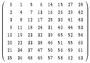 さて、ぼくのプログラムがどうなっているかです。 まず Fvu から S'yu を計算する部分ですが、 64通りのルーチンを作ると なんかプログラムがでかくなりそうでいやなので (なんか昔と考え方が違うな)、 行に関して上から何番目まで 0 でないデータが入っているかによって8通りの ルーチンを作り、それを8回呼ぶようにしました。例えば、0 から 5 まで データが入っている場合は、1 列目が 3 個、2 列目が 2 個、3 列目が 1 個なので それぞれに対応するルーチンを呼ぶようになっています。